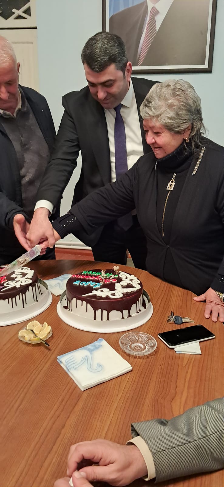 Zəfər Gününün şərəfinə tort kəsildi, tədbir çay süfrəsi ətrafında səmimi söhbətlərlə davam etdi.